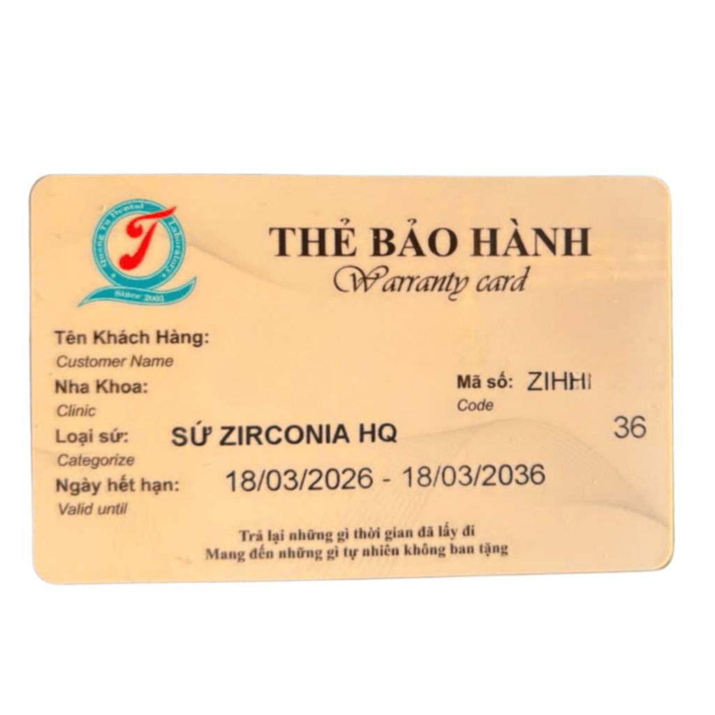 Khách hàng sẽ được cấp phiếu/thẻ bảo hành sau khi hoàn tất điều trị.